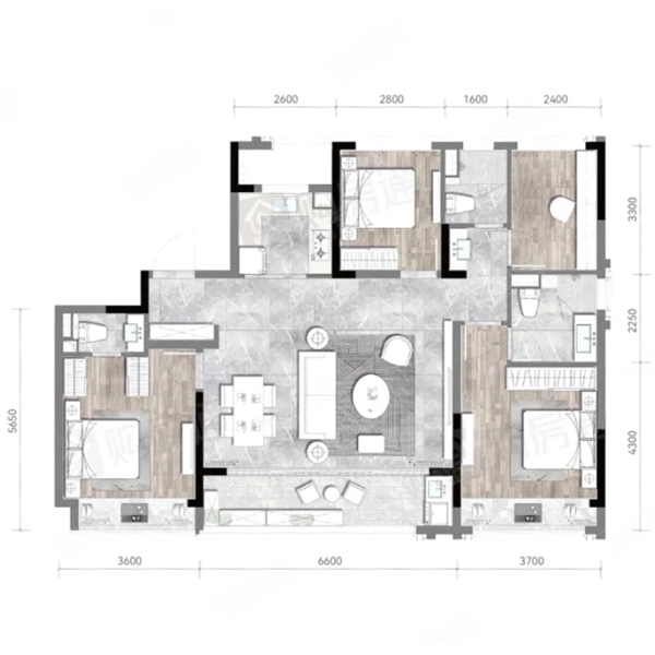四、F 戶型 139㎡的四室兩廳一廚三衛(wèi)
