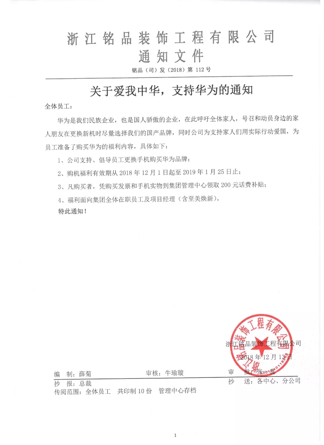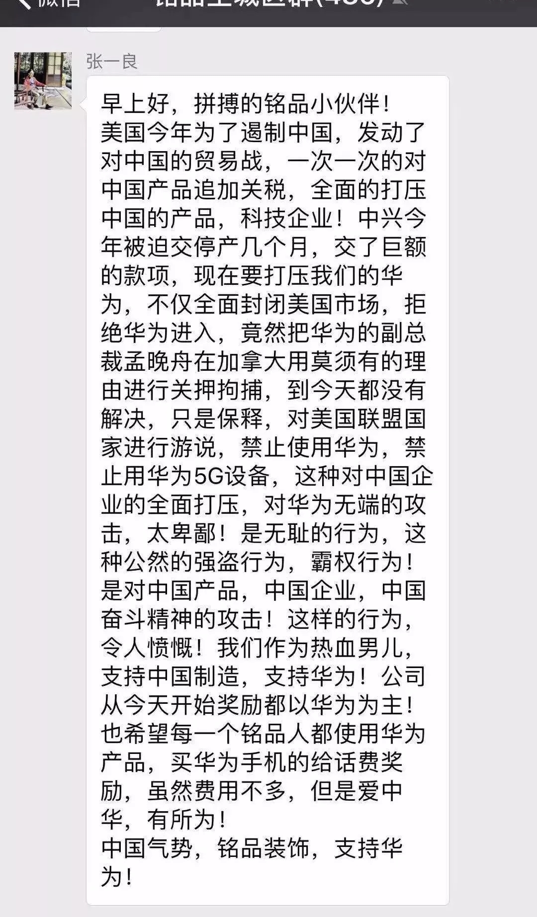 銘品裝飾董事長(zhǎng)張一良用實(shí)際行動(dòng)為華為發(fā)聲,
