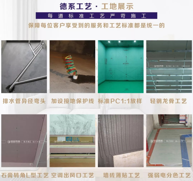每個小區(qū)都有不同階段的在裝工地,讓你在零距離接觸工地的同時學習更多裝修小知識,還能考察銘品裝修的施工工藝水準。