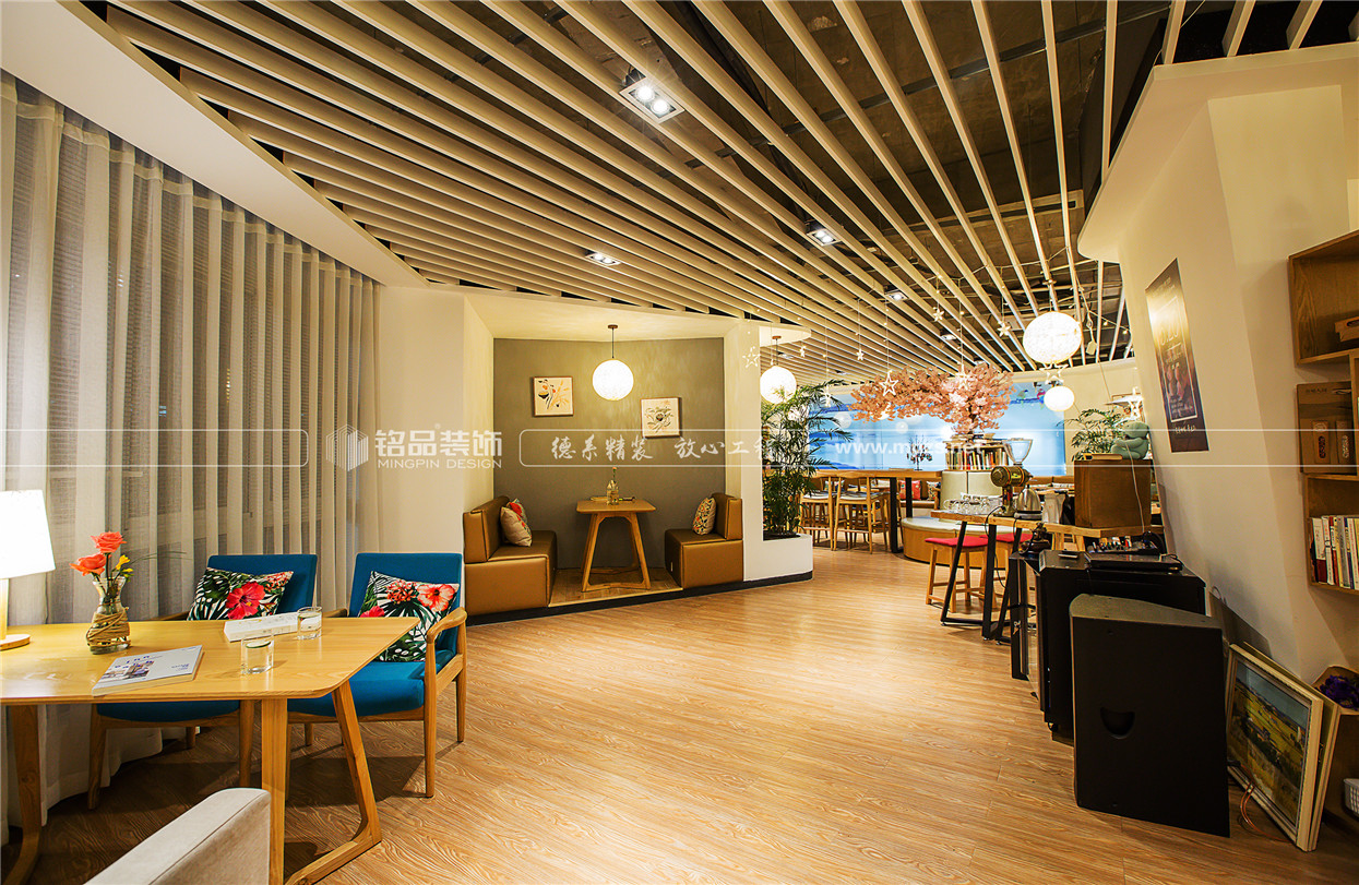 咖啡廳作為現(xiàn)代都市年輕人閑暇之余學(xué)習(xí)、交友、休閑、聊天的一個平臺在裝修的時候非常注重功能性,所以本案設(shè)計師在規(guī)劃這一套咖啡廳的裝修的時候不同的空間和角度設(shè)計了不同的功能。